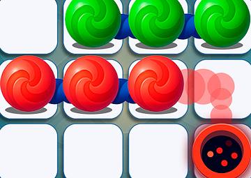 Inizia dalla sfera con le frecce. Trascinala nello spazio del suo colore, il resto la segue. Se la catena mescola piu colori, separali e sistemali uno alla volta. In alto trovi quattro spazi. Con tre uguali il gruppo scompare. Se incastri male, la manche termina